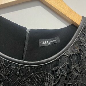 C&M Collection Black Lace Overlay Top Formal Blouse Plus Size 50/2X Cap Sleeve