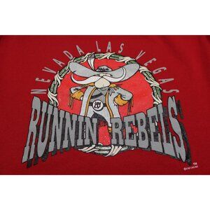 Fantastic vintage UNLV Runnin' Rebels fleece sweatshirt in bright red. Large front print.