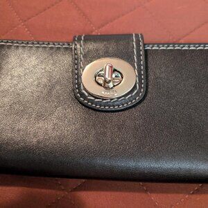 COACH BLACK LEATHER TURN LOCK LONG WALLET
