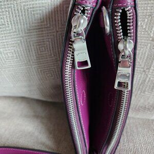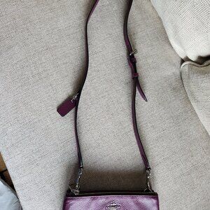 COACH Double zip crossbody pebble leather Deep Berry/purple EUC travel