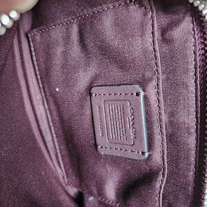 Awesome small shoulder/crossbody double zip bag from COACH. This bag is in like-new condition. Coach color is Deep Berry with silver hardware. The bag is made of refined pebble leather and has fabric lining. A detachable strap has 22: drop and can be worn as shoulder or crossbody. Remove the strap for use as clutch!. Two zippered close sections and center magnetic snap close compartment. Inside has multi function pocket and two credit card slots. Leather creed patch sewn interior G2311-CJ789. Length 8.75", height 4.25", width 1.75". Hangtag on shoulder strap