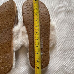 🍯 - Cozy faux fur lining with classic Coach “C” monogram print, slip-on style with rubber grip bottoms—perfect for lounging in style or gifting during the holidays!