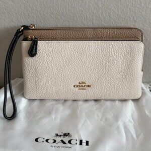 COACH - Leather Double Zip Wallet in Chalk / Black Multi