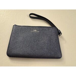 COACH Metallic Denim Dark Blue Corner Zip Wristlet Pouch Wallet OC30