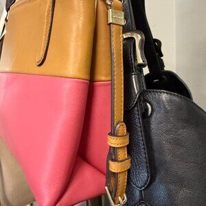 Gold Tone Hardware/Loganberry/Tan w Beautiful Black Tag-3 zip top compartments-Fabric Lining
