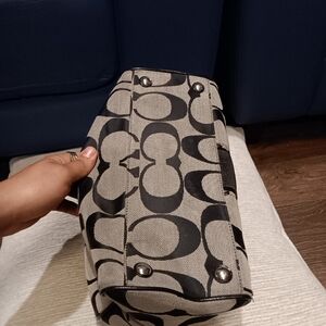 COACH Signature Stripe Black & Gray Handbag Satchel Purse