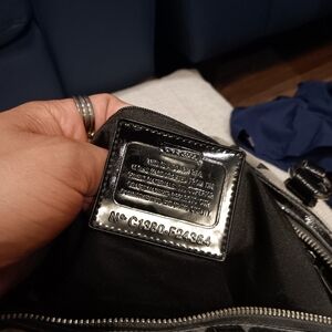 Elevate your style with the Coach Signature Handbag in black and cream. This elegant bag features the iconic Coach pattern, perfect for any occasion.