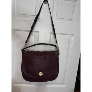 COACH Turn Lock Hobo Saddle Two Way Crossbody Oxblood Pebble Leather #24771