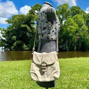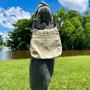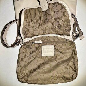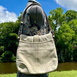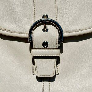 COACH Vintage Soho Soft Duffle Leather Crossbody Shoulder Bag Cream Silver 9480