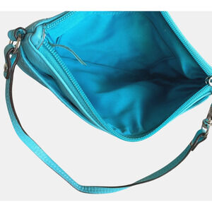 COACH Women's Small Teal Pebble Leather Silver Turn Lock Top Zip Wristlet. Classic Design. 8" x 5". Gorgeous Teal Satin Interior. Buttery Soft Leather. 3-4 Very Small Markings. See All Pictures For Additional Description. Very Good Condition. Ships within 24 hours.