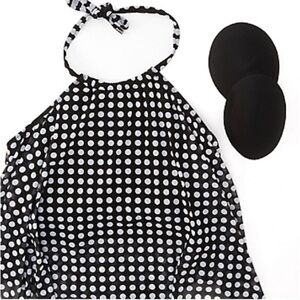 COCO REEF Riviera Dot Aura Mesh Ruffle Crop Tankini Swimsuit Bikini Black 34DD