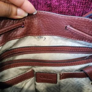 COLE HAAN Burnt Orange Pebbled Leather Adjustable Strap Satchel Shoulder Bag