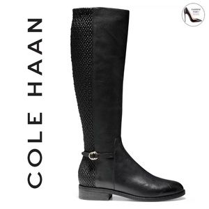 COLE HAAN Isabell Women's Stretch Black Leather Knee High Riding Boots 7