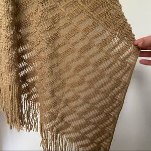COPY - Textured Neutral Blanket Poncho Fringe Wrap Scarf