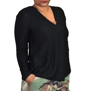COS Wool Sweater Black Minimalist V Neck Jumper Knit Top Monochromatic Size XS
