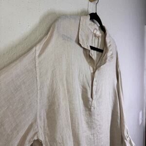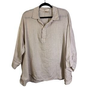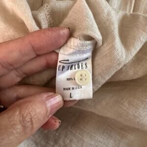 CP SHADES Blouse Large Gigi 100% Linen Two Button Placket Front Crop NWOT