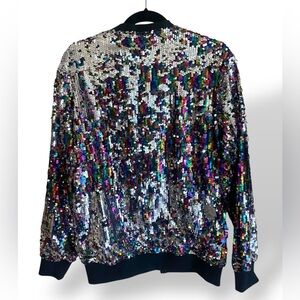 Standout from the crewed with this multicolored sequined Bomber Baseball style jacket. Full front Zip, Sparkling sequins. New with tags