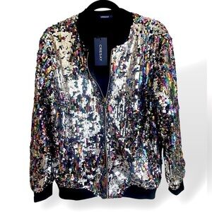 CRESAY Multi Colored Sequined Bomber Jacket Size X-Large Black NWT Hollywood!!