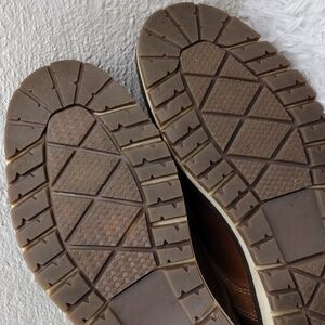 CREVO Drayton Chestnut Men's Suede Leather/Leather Upper Round Toe Four-Eyelet Two Hook Lace Up Casual Streetwear Ankle Boot. Textured Rubber Sole. Cushion Leather Footbed. Suede Leather Lining. Heel Pull Tabs. Leather Upper Toe/Heel Scuffs. Upper Sole Marks. Size 8.5 Color May Vary Due To Lighting.