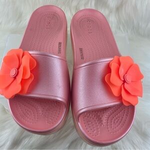 CROCS PLATFORM VIVIC BLOOMS PINK SLIDES-SANDALS SIZE 9 WOMAN