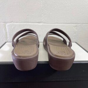 CROCS Patricia Brown Sandals Mini Wedge Slip On Strappy Women's Size 10 US