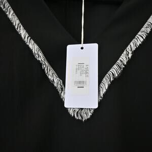 CROSBY Mollie Burch Suzie Tunic Top Black Sz XS Fringe V Neckline Short Sleeve
