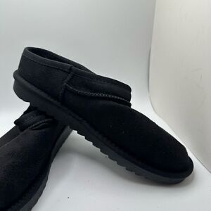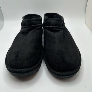 CUSHIONAIRE Women's Faux Shearling Genuine Suede cozy mule slippers 7.5 BLACK