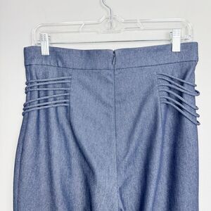 Beautiful blue denim look pants by Cushnie et Ochs. High waisted. Back zipper closure. Fun lace up look details at the hips. Wide leg. Light stretch. Great condition. Women’s size 10.