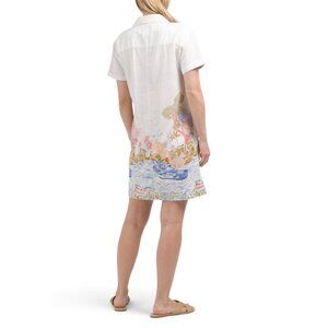 CYNTHIA ROWLEY Bright White Linen Blend Short Sleeve Mini Shirt Dress