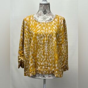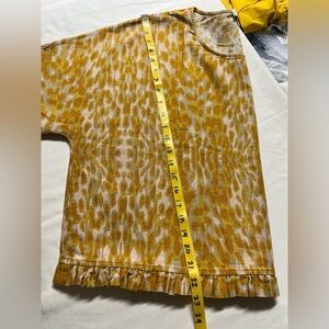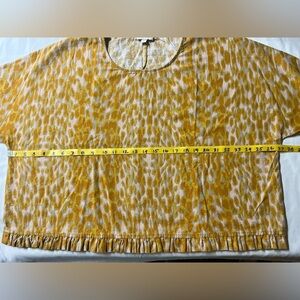 Yellow Cheetah print Linen blend ruffle hemline and sleeve top from CYNTHIA ROWLEY, size M.
