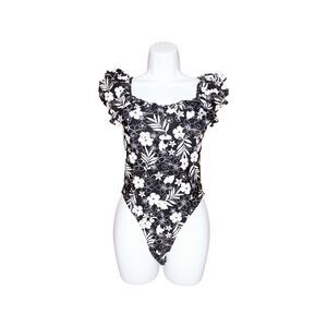 Cabana Del Sol Women Ruffle Off The Shoulders Floral One-Piece Black Size M 8551