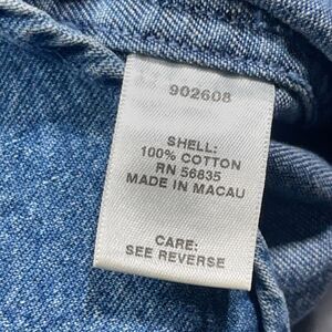 Rugged workwear, this Cabelas denim shirt brings a blend of durability and classic style. Featuring long sleeves, a button-up front, and a smart point collar, this shirt includes two chest pockets with button closures for secure storage. The distinctive elbow patches add an extra layer of reinforcement and visual interest, making it both practical and stylish. Perfect for casual outings, outdoor adventures, or a relaxed day on the job.