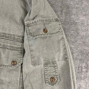 Cabela's Men's XL Safari Button Up Zip Pockets Utility Shirt Hunting Olive Roll up