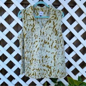 Cabi Flurry Top in an Olive & Cream Abstract Pattern. Size Large. NWOT