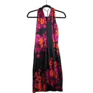 Cache Floral Sleeveless Halter Dress Womens Silk Blend Summer Size 2