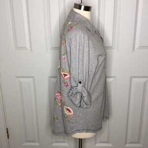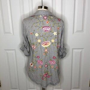 Caite Handmade Embroidered Buttondown Shirt Grey M