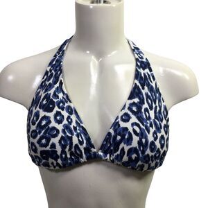 Calme Womens Tiger String Bikini Top Stretch Blue White Size S NWT
