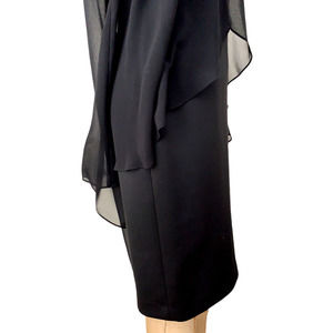 Calvin Klein Solid Black /chiffon movement layers over a black contoured beauty/ Short Sleeve Dress Size 4