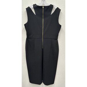 Calvin Klein Classic Sheath Dress Womens 16 Black Sleeveless Knee Length Career