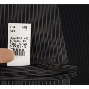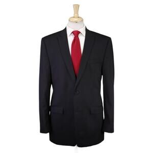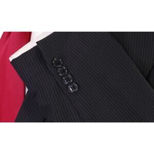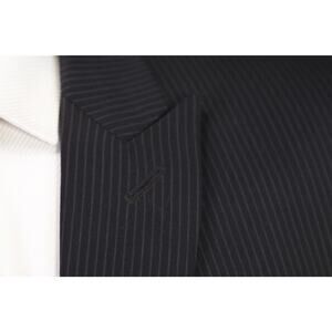 Calvin Klein Men's Black Striped Peak Lapels Slim Fit 2-Btn Wool Suit 42L