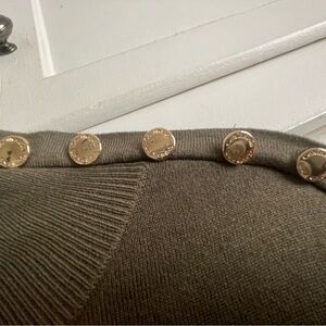Calvin Klein Olive Green Mock Neck Sweater With Gold Tone Buttons. Pre-Owned.