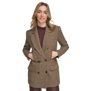 Calvin Klein Women's X-Fit Textured Wool Double-Breasted Blazer Jacket Brown 10