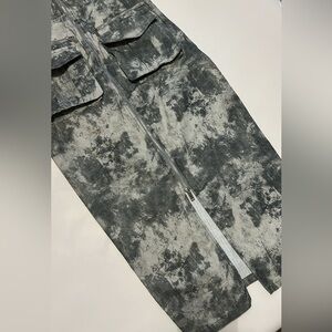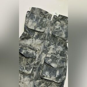 Stylish strapless maxi dress with a camouflage pattern. Features a front slit and large pockets.