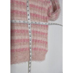 Candie's cozy and soft pink striped fuzzy mock neck sweater