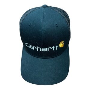 Carhartt Men's Rugged Flex Fitted Canvas Black Mesh-Back Logo Graphic Cap