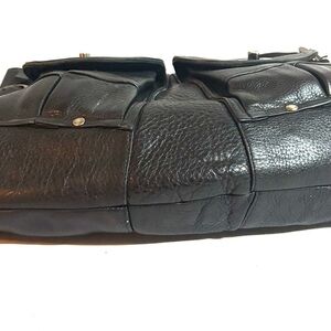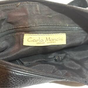 Carla Mancini back This sophisticated shoulder bag features a rich dark brown leather exterior, complemented by contrasting tan straps. The gold-toned hardware adds a touch of elegance, making it a versatile accessory for any occasion.fabric lining 2 pockets at front lining have minor stains hight 10” wide 16” depth 2.5” strap drop 14”The dimensions are based on approximately measurements before placing an order please check take a moment to view all photos using feature for a closer look