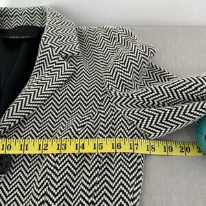 Carlisle blk/wht chevron wool blazer. Wool/polyester blend.