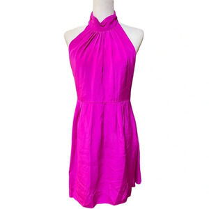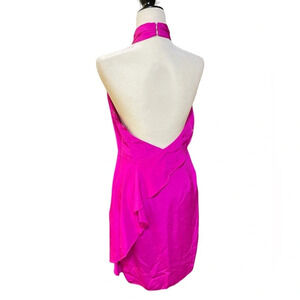 Carmen Marc Valvo Fuchsia Ruffle Halter Dress