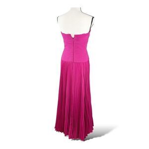 Carmen Marc Valvo Silk Strapless Fuchsia Gown With Ruffle Detail Pleated Skirt 4