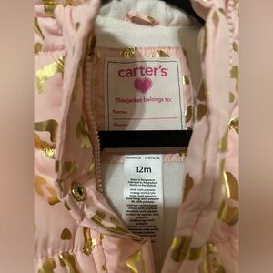 Carter’s Pink Leopard Puffer Jacket with hoodie girls sz 12m.